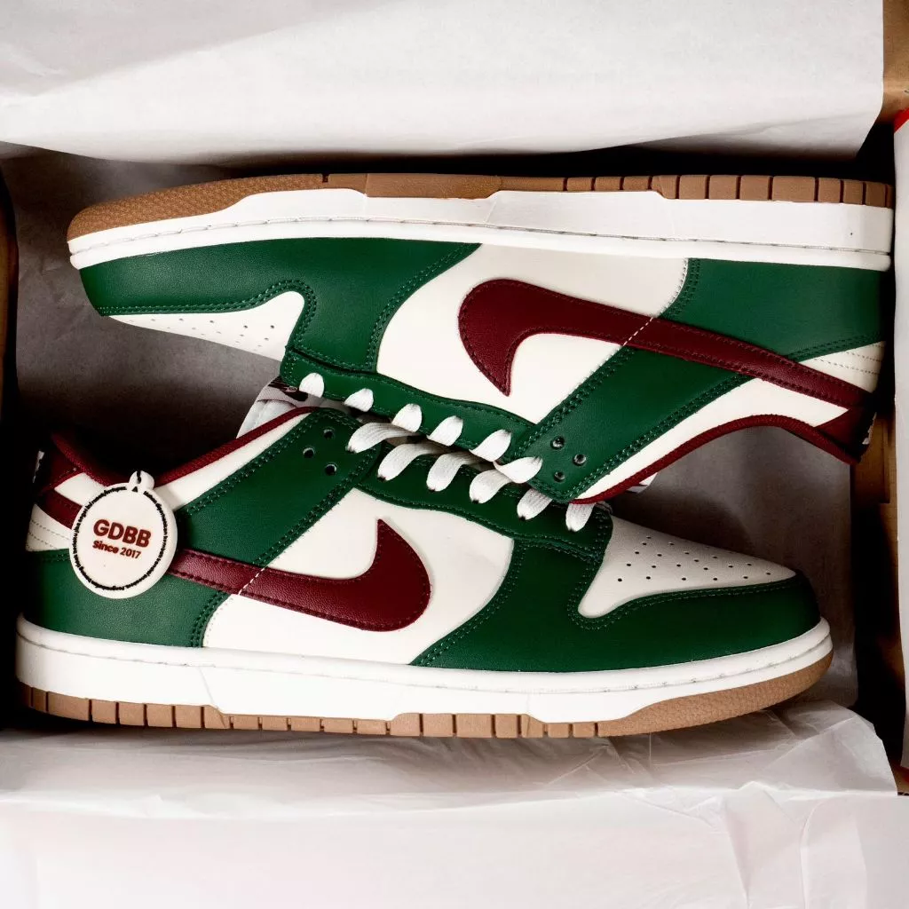 Sepatu Casual Dunk Low Gorge Green White Green Red Sneakers Authentic